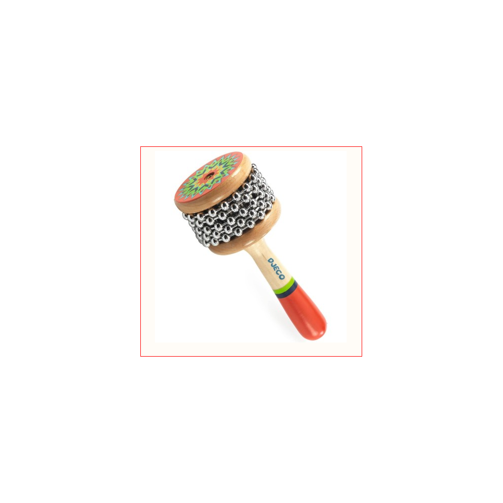 Une cabassa joliment illustrée sur le thème amérindien. Lorsque l’enfant fait tourner les perles sur la partie métallique crantée ou secoue l’instrument, le son émis rappelle celui du serpent à sonnette. Un instrument à percussion idéal pour les petits musiciens dès 5 ans.
