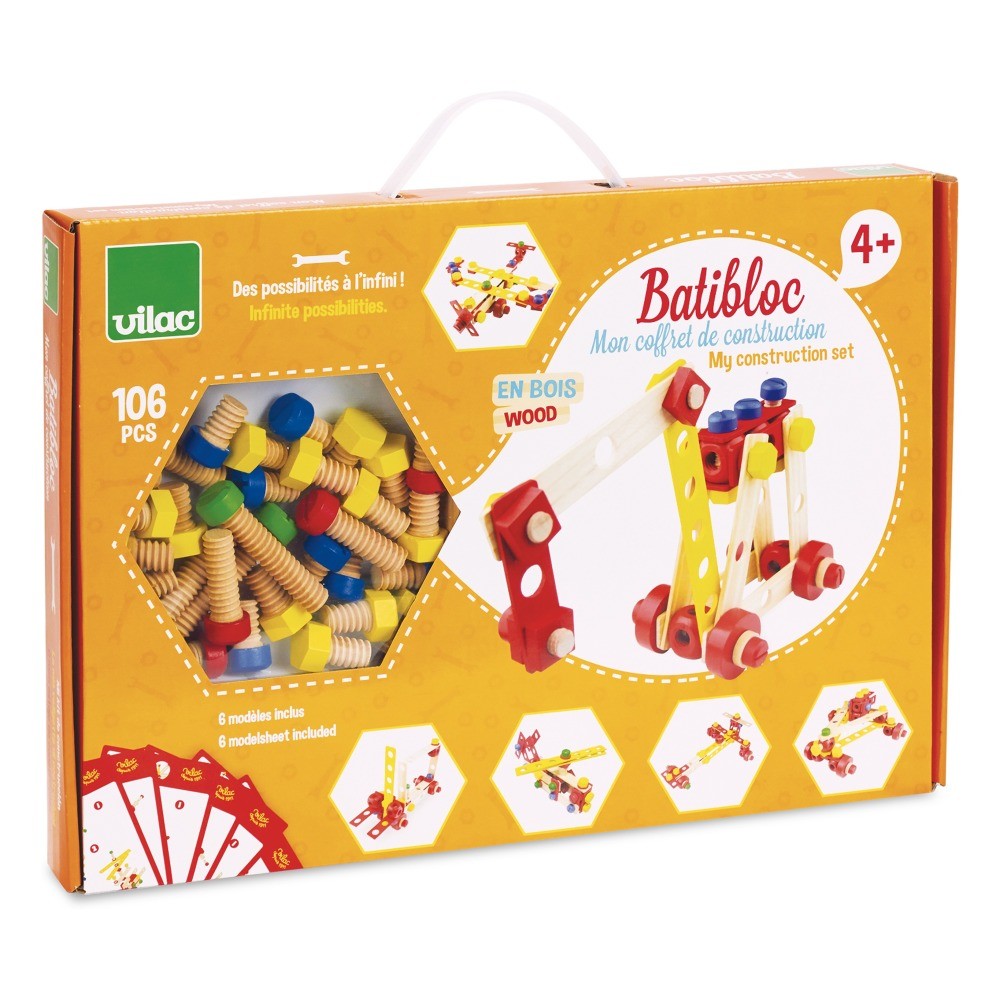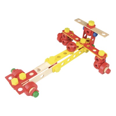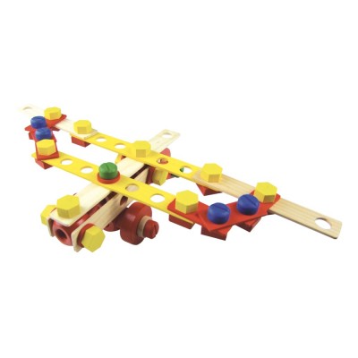 offret complet et idéal pour réaliser ses premières constructions en bois et pour développer l'imagination des enfants. 106 pièces à assembler.