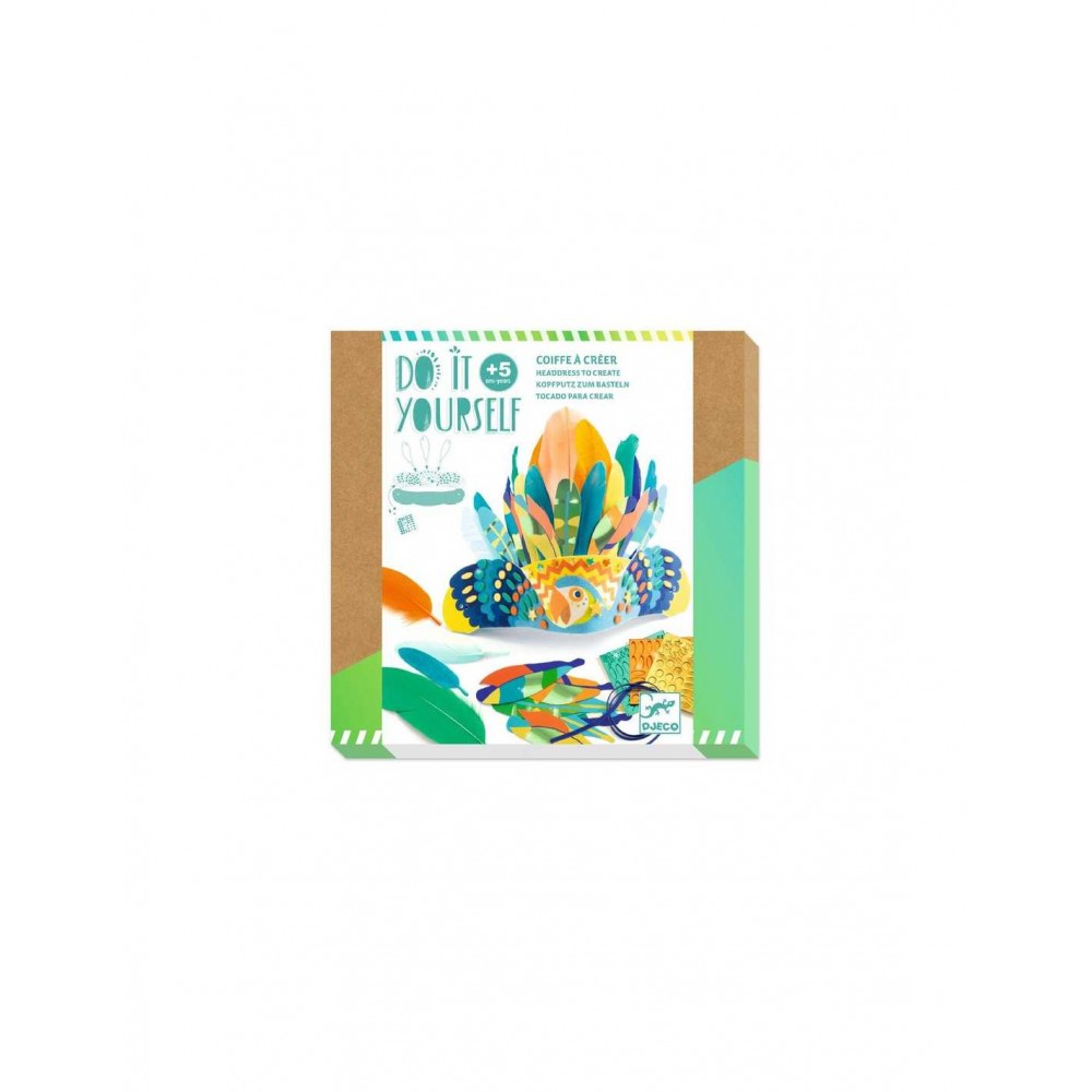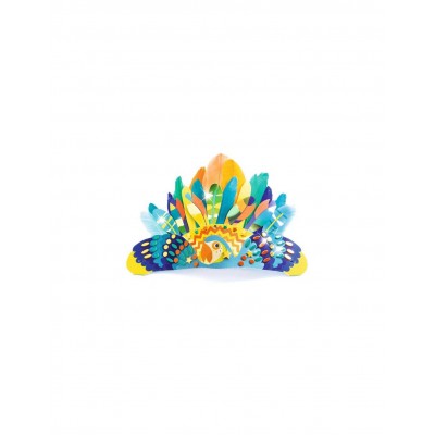 Découvrez le coffret coiffe à créer Rio de la collection Do It Yourself de Djeco, un kit créatif permettant aux enfants, dès 5 ans, de confectionner une superbe coiffe tropicale grâce à des plumes colorées et des stickers.