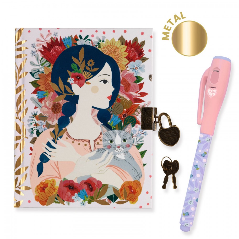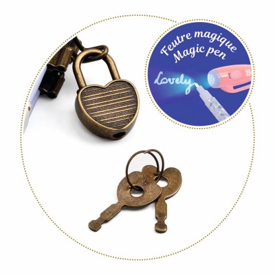 Un carnet secret avec de belles illustrations douces et printanières, pour écrire et dessiner tous ses secrets avec un feutre à encre invisible ! Il suffit de passer la lampe à UV dessus pour que tous les secrets soient révélés. Ce carnet est composé de 88 pages lignées, toutes illustrées de petits dessins. Il possède un cadenas en forme de cœur et deux clés pour garder toutes ses histoires à l'abri des regards indiscrets. Lovely Paper by Djeco, une collection de papeterie raffinée et délicate aux jolies illustrations, pour illuminer le quotidien des grands et des petits.