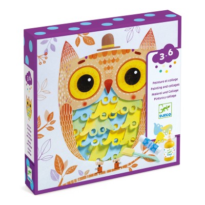 Contenu : 4 planches prédécoupées à peindre, 4 cartes animaux à décorer, 3 bouteilles de gouache (bleu, jaune et rouge), 1 tube de colle, 3 pinceaux en mousse, 1 protection de table et 1 livret explicatif pas à pas.