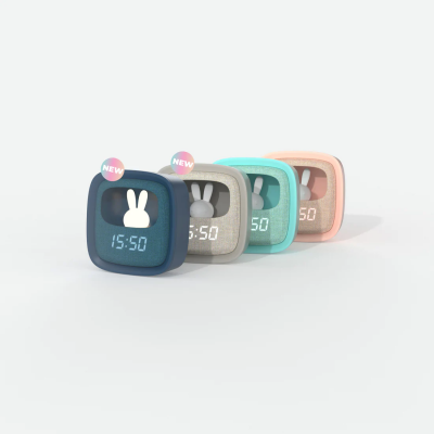 Vous pourrez programmer l’heure, la date et deux alarmes. Le réveil Billy veillera vos trésors grâce à sa veilleuse intégrée dans le petit lapin souple en silicone. La luminosité est réglable via un bouton tactile sur le réveil, très simple à utiliser.