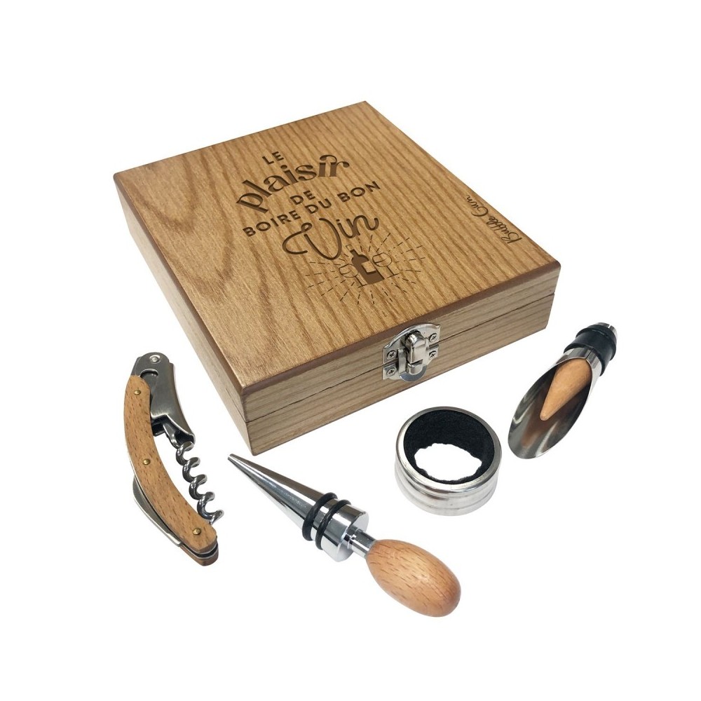 Coffret Sommelier en bois. Contient les indispensables pour les amateurs de bons vins ! Une bonne idée cadeau.