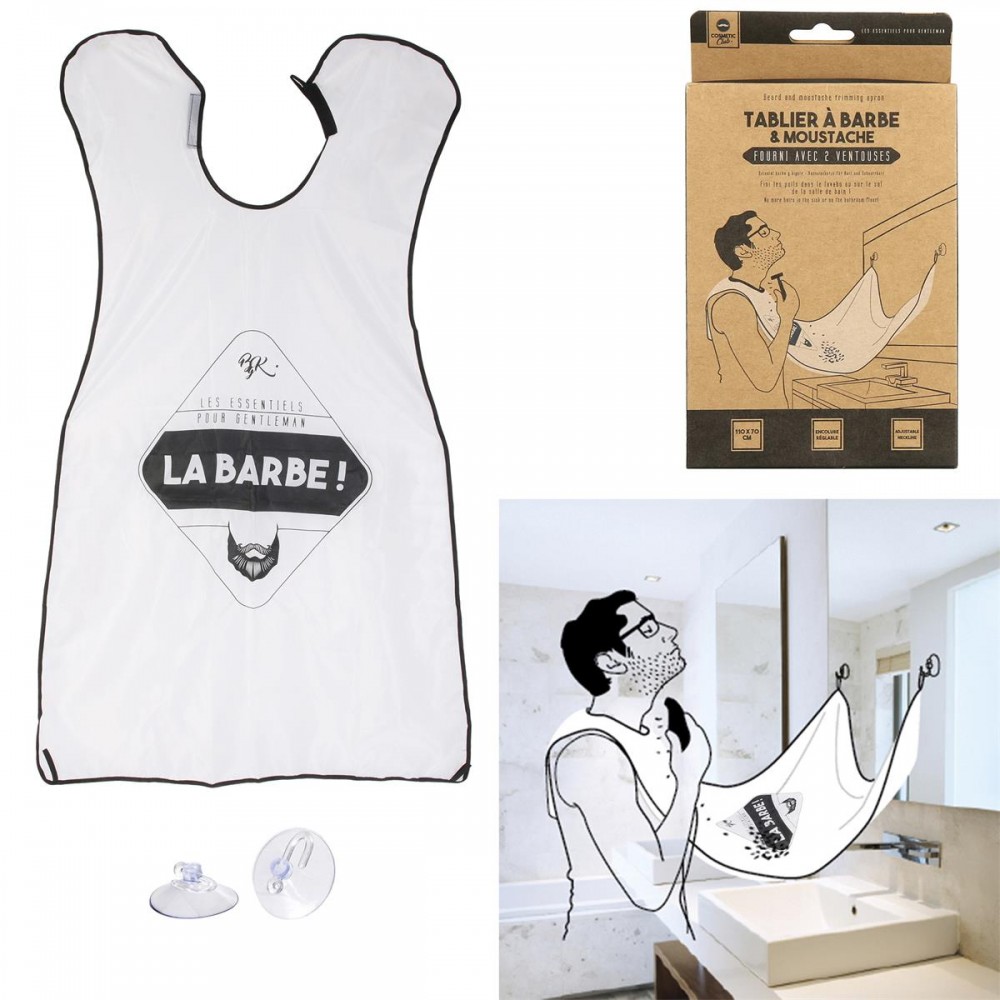 Madame, vous en avez marre des poils qui traînent partout sur le lavabo ? Monsieur, vous voulez un rasage propre et rapide, sans en semer sur le pull ? La solution, c’est le Bavoir de rasage. Il se fixe au miroir avec les ventouses pour protéger le lavabo et vos vêtements, par la même occasion. Vous n’avez plus ensuite qu’à le décrocher et à le vider dans la poubelle. Comme quoi, un rien peut changer la vie !