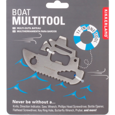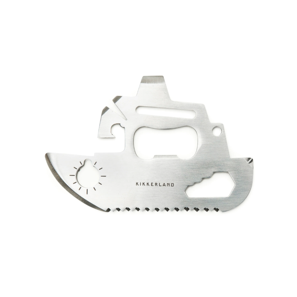 Multi-outils en forme de bateau pour les amateurs de nautisme ! Comprend un couteau, un trou pour porte-clés, un indicateur de direction, une clé papillon, un tournevis plat, un tournevis cruciforme, un ouvre-boîte, une clé à molette, un décapsuleur, un pied-de-biche et une scie. Design : KDT , Matière : acier inoxydable , Prod. Dim : 7,9 x 5,2 x 0,2 cm , Pkg. Dim. de l'emballage : 12,5 x 14,3 x 1 cm