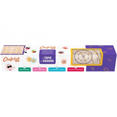 Oubliez le papier sulfurisé ! Le tapis de cuisson Chefclub permet une cuisson homogène et régulière grâce à son système de graphisme intégré. Suivez les graduations et réalisez vos macarons, cookies, pizza et autres chefs-d'œuvre sucrés et salés ✨
