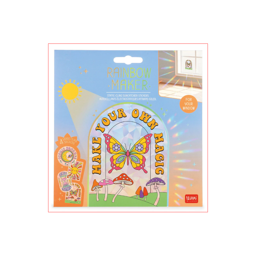 La vie vous a donné des rayons de soleil ? Faites-en des arcs-en-ciel ! Magie instantanée avec ce Set de 4 Autocollants Électrostatiques Attrape-Soleil pour Fenêtre - Rainbow Maker de Legami. Il suffit de les coller sur les vitres traversées par les rayons de soleil pour créer des effets lumineux façon arc-en-ciel dans n’importe quelle maison.