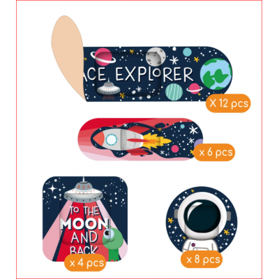 Chacun de vos grands projets peut s’accompagner d’un petit imprévu... Très vite résolu avec le Kit de 30 Pansements Imprimés sur le thème de l’Espace ! Appliquez un patch et repartez vers de nouvelles aventures galactiques.
