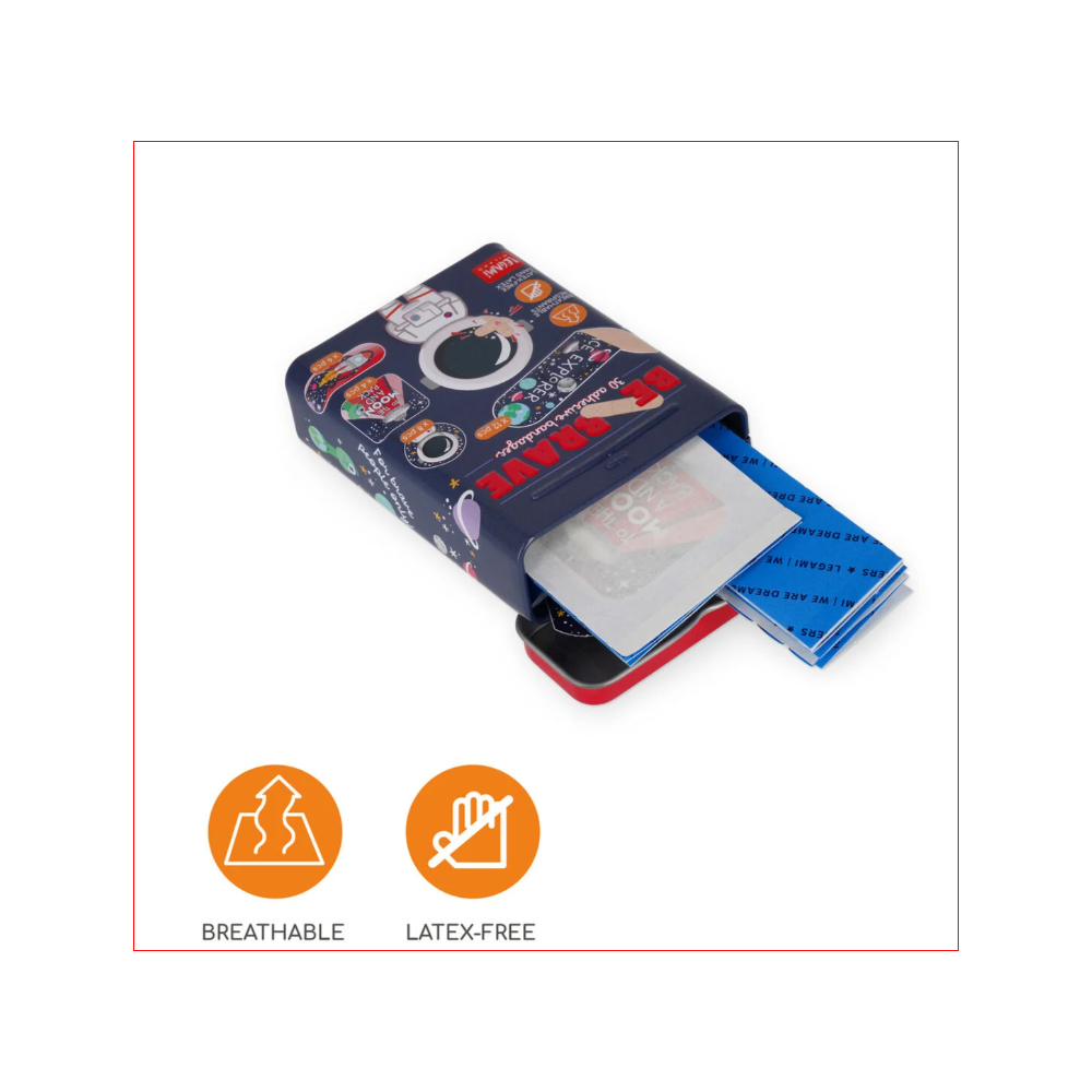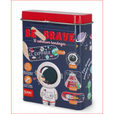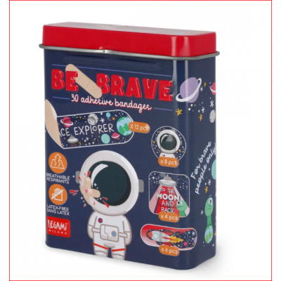 Chaque petite blessure est une occasion de grandir. Mais c’est surtout l’occasion de la rendre super cool grâce aux 30 Pansements imprimés - Be Brave Space de Legami ! 4 tailles différentes, une formulation extrêmement délicate et des détails colorés font d’eux les pansements parfaits pour tous les enfants...que tous les adultes envieront.