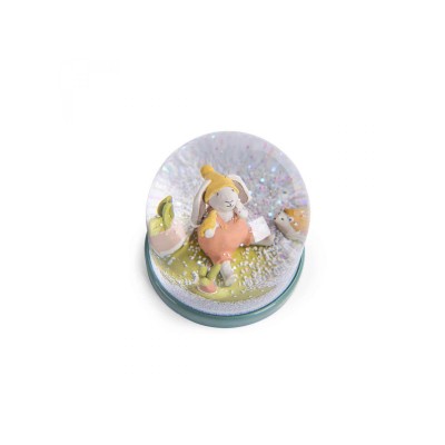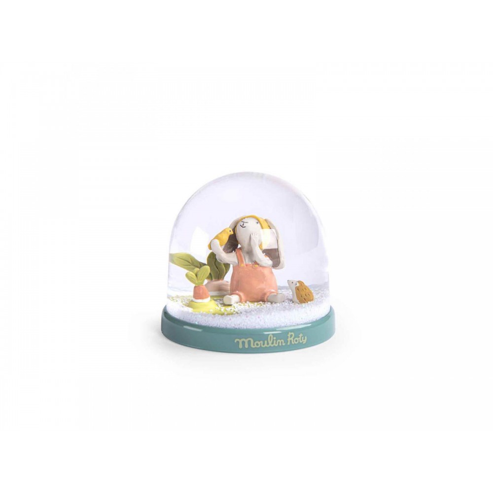 Boule à neige représentant un moment de tendresse entre un lapin et ses amis. Les voilà au jardin, au milieu des flocons, se partageant radis et petits secrets ! En plus de décorer la chambre, bébé aura les yeux qui brillent en regardant tomber la neige.