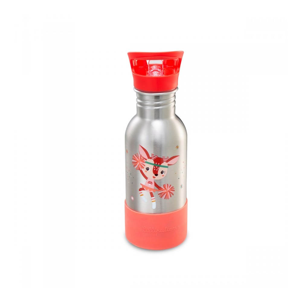 Cette gourde de 600 mL est composée d’acier inoxydable, elle est résistante au temps et aux éventuels coups qu’elle pourrait encaisser lors des aventures de votre bambin grâce à la base en silicone. Le bouchon en plastique permet d’être empoigné facilement.