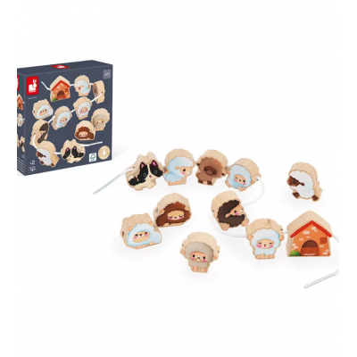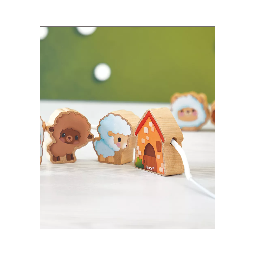 Vite, à la bergerie ! Avec ce set de perles à enfiler en bois sur le thème de la ferme, bébé développe sa motricité fine en s’amusant, et ce dès ses 2 ans. Notre ami le chien de berger a besoin d’aide pour guider les moutons jusqu’à la bergerie ! Ce jouet d’éveil se compose de 11 pièces en bois (9 moutons, 1 chien, 1 maisonnette) et de 2 cordons. On retrouve des embouts rigides à l’extrémité de chaque cordon pour faciliter le passage des perles, idéal pour les petites mains potelées ! Ce jouet premier âge favorise également l’imagination de votre enfant, car les pièces tiennent debout et deviennent ainsi de vraies figurines. De belles histoires et des courses folles attendent les petits à la ferme ! Ce jouet pour bébé est composé de bois certifié FSC™.