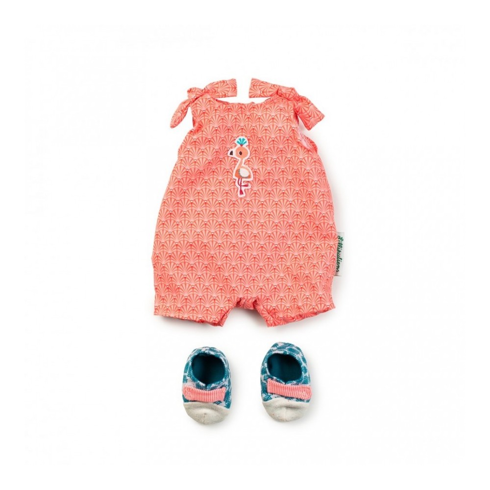 Une tenue d’été pour Lou, Noa et Rose. Convient aux poupées d’environ 36 cm. Habiller et déshabiller une poupée stimule la motricité fine.