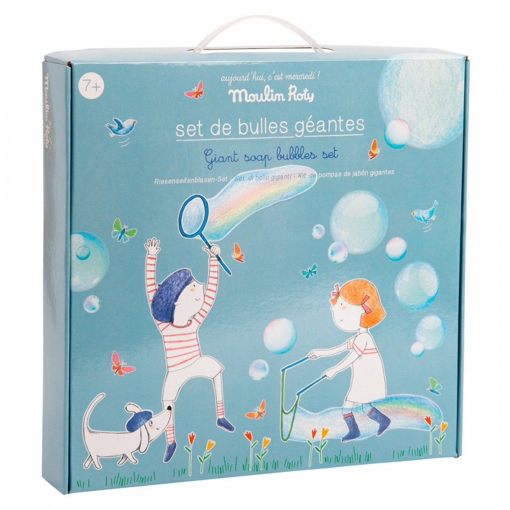 Découvrez le set de bulles géantes de la collection Aujourd'hui c'est mercredi de Moulin Roty.