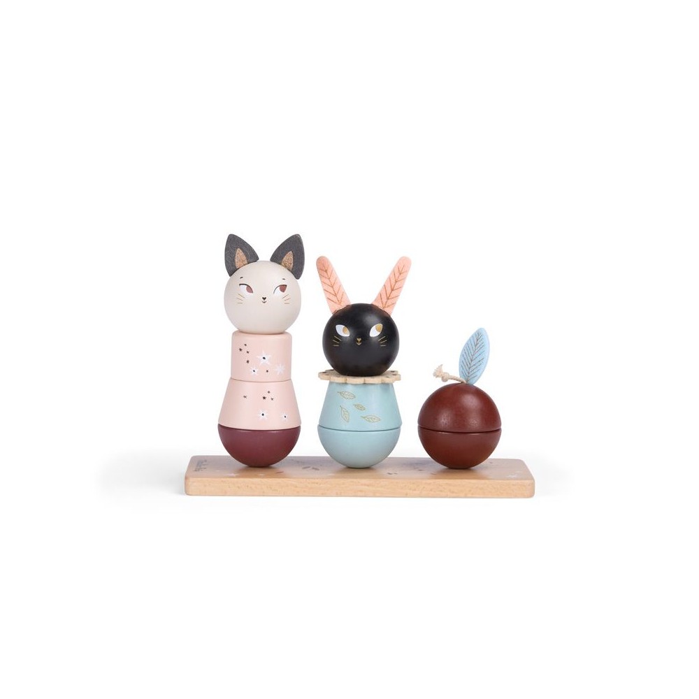 Empilable multi-activités pour développer la capacité de l'enfant à manipuler et compter. Sur un socle en bois, empilez les parties en bois coloré pour recomposer les doux esprits d'Après la pluie… ou mélangez-les !