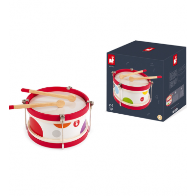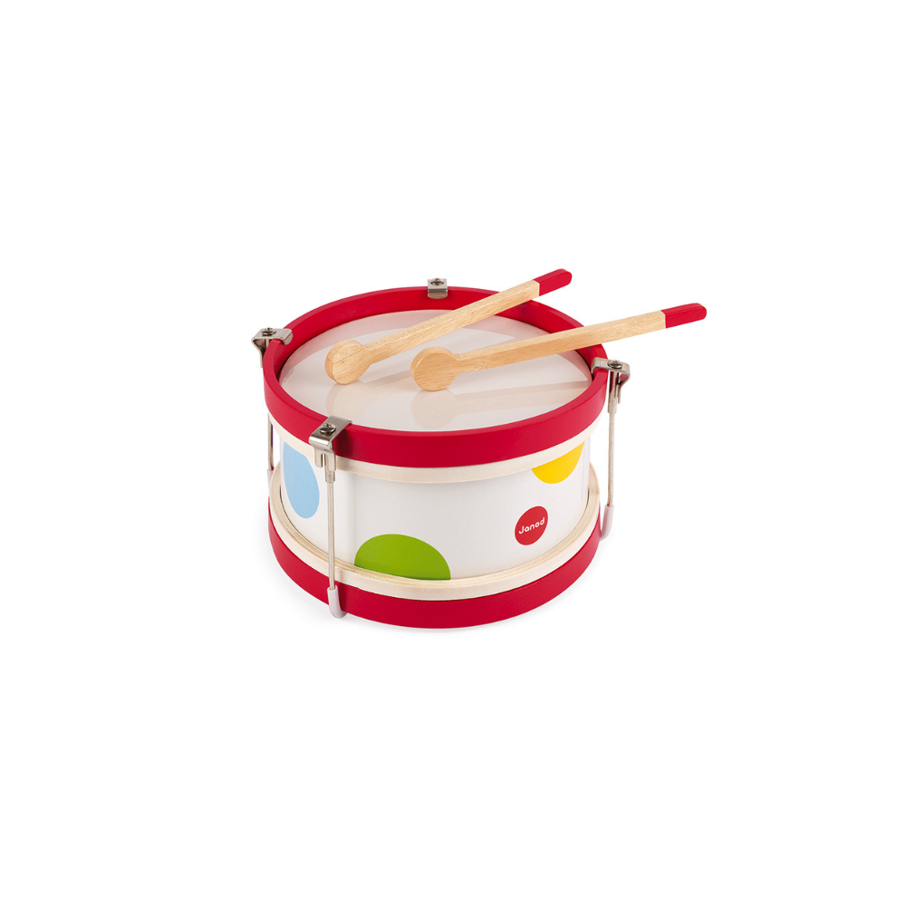 En avant les percutions avec ce beau tambour en bois ! Les enfants dès 2 ans vont pouvoir expérimenter avec les sons et s'éveiller à la musique, tout en prenant confiance en eux. Ce tambour fait partie de notre gamme Confetti : une gamme de jouets imitant les instruments de musique avec des motifs Pop N'Rock ! Deux baguettes sont incluses. C'est un vrai plaisir pour votre enfant de jouer à la star avec son instrument rien qu'à lui !