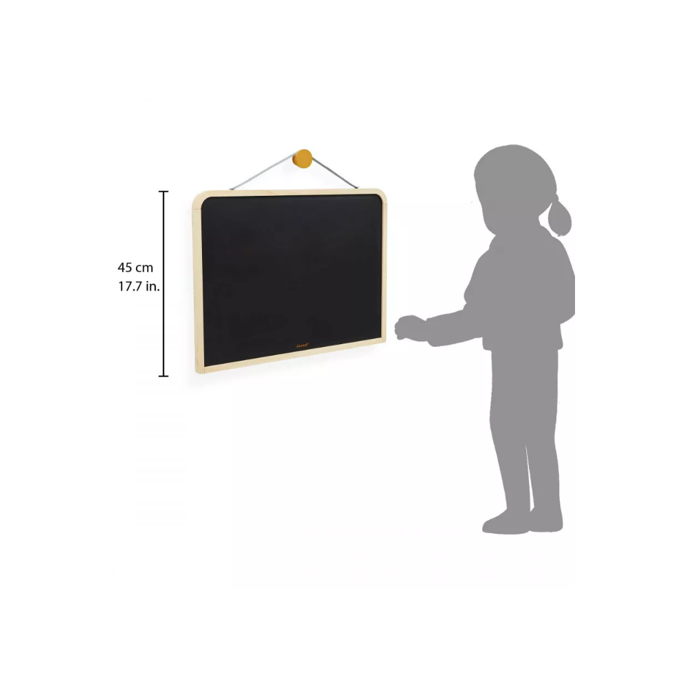 Au tableau ! Petits artistes et apprentis professeurs dès 3 ans sont ravis : voilà un grand tableau magnétique en bois prêt à accueillir leurs plus beaux dessins ! Ce tableau mural est livré avec tout le nécessaire pour exprimer sa créativité sans attendre : 3 craies, 1 brosse et 1 patère pour le suspendre facilement au mur. Pas besoin de choisir entre le dessin et l'écriture : ce tableau en bois est double-face ! Avec une face noire unie et une face avec quadrillage, ce tableau recto-verso est sans compromis. Les enfants dessinent à l'infini, apprennent à écrire, révisent leurs leçons et jouent à la maîtresse au gré de leurs envies ! A poser ou à suspendre, ce tableau noir trouve aisément sa place dans la chambre ou près du bureau de votre enfant, c'est sa propre surface d'expression. Petits et grands n'attendent qu'une chose : accrocher des magnets et inventer les dessins les plus fous ! Idéal pour développer l'imagination et la créativité, ce tableau suit les enfants au gré de leurs apprentissages. Il est en bois certifié FSC®.