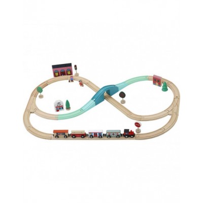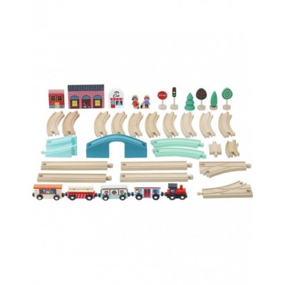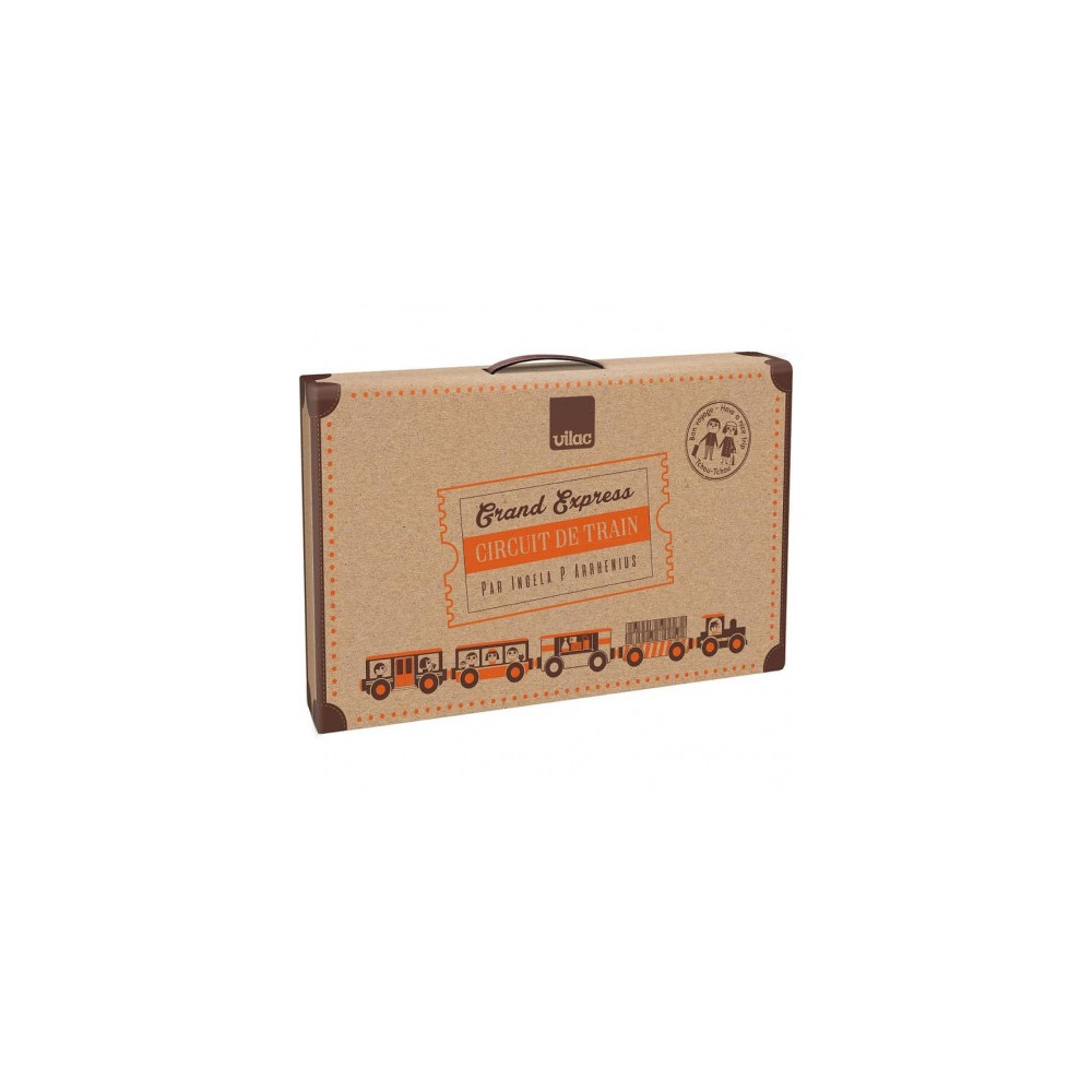 En voiture voyageurs, montez à bord du train Grand Express d'Ingela P.Arrhenius. Un joli circuit de train de 40 pièces en bois composé de : 1 locomotive, 4 wagons, circuit 24 pièces, 1 gare, 2 maisons, 2 personnages, 4 arbres et 2 panneaux de signalisation. Compatible avec de nombreux autres circuits de train disponibles sur le marché. Livré dans sa valisette de voyage en carton.