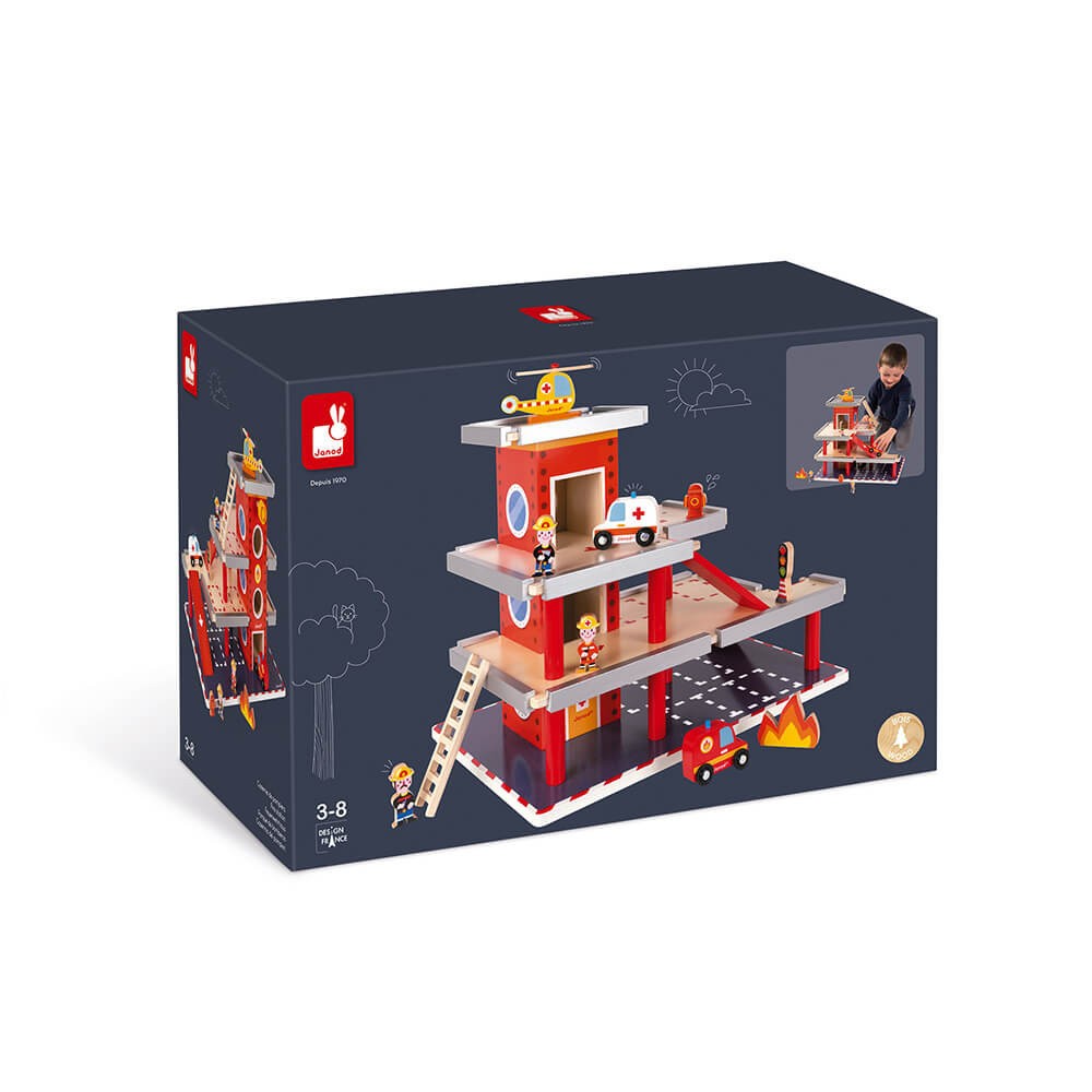 Sortez les tuyaux et la grande échelle, un feu s'est déclaré ! Votre petit va pouvoir plonger dans l'univers des pompiers grâce à cette magnifique caserne en bois pour enfant à partir de 3 ans. Ce jouet va satisfaire tous les petits fans de pompiers et leurs histoires incroyables ! Sur 3 niveaux, cette caserne est composée d'un ascenseur qui monte et qui descend grâce à un bouton à tourner et d'une piste d'atterrissage pour hélicoptère ! Ce jouet va donner la possibilité à l'enfant de travailler son imagination et créer son propre univers en toute autonomie. Cette caserne de pompiers inclus 10 accessoires en bois pour permettre aux enfants de recréer la vraie vie des pompiers en action (2 voitures, 1 hélicoptère, 1 feu tricolore, 1 borne incendie, 1 feu et 3 pompiers).