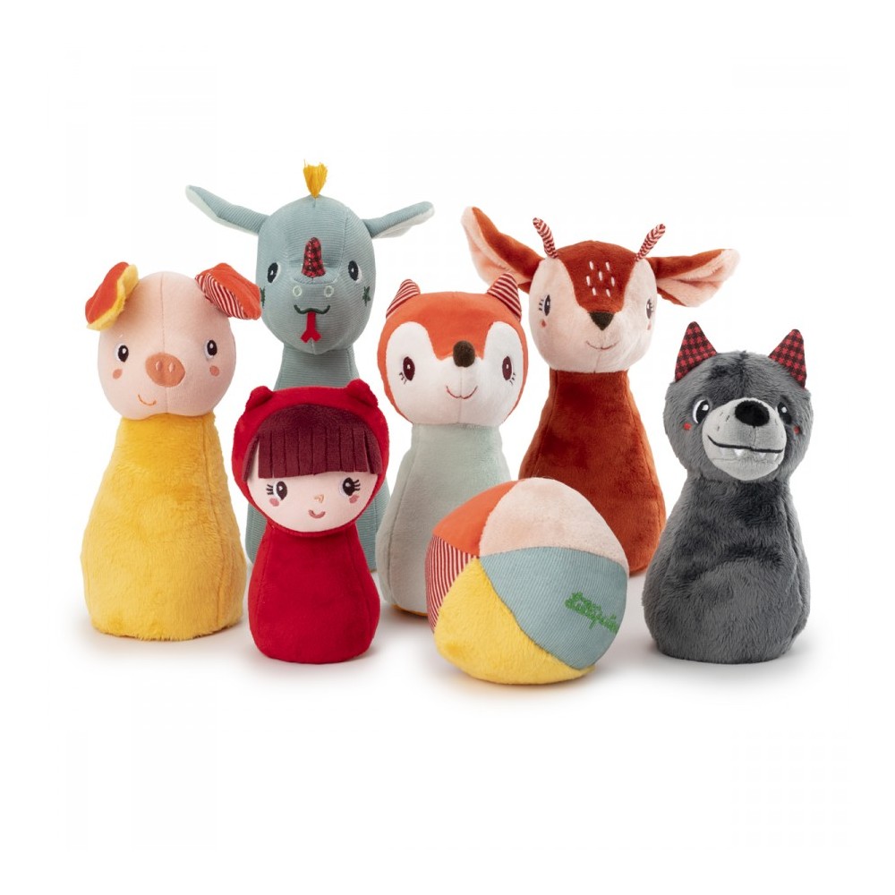 Qui peut faire tomber cette joyeuse bande d'amis de la forêt en un seul lancer ? Ce jeu de quilles coloré est composé de 6 quilles souples et d'une balle sonore en tissu. Pour jouer à l'intérieur tout en douceur et devenir une future star du bowling