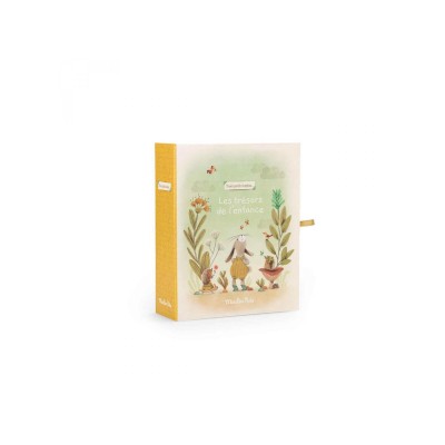 Coffret à trésors pour conserver les souvenirs de bébé dans chacun des tiroirs ... Se referme avec de jolis liens et reprend les tendres illustrations des personnages de la collection Trois Petits lapins à l'intérieur comme à l'extérieur.