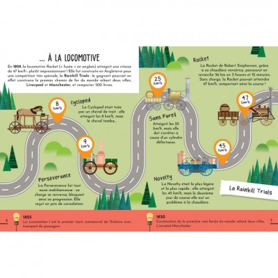 Découvre l’histoire, le fonctionnement et la technologie des trains ! Comment les anciennes locomotives étaient-elles faites ? Quelles sont les différentes parties qui composent un wagon ? À quelle vitesse les trains modernes roulent-ils ? Monte sur les quais et file à travers les mille curiosités d’un des moyens de transport les plus répandus au monde !
