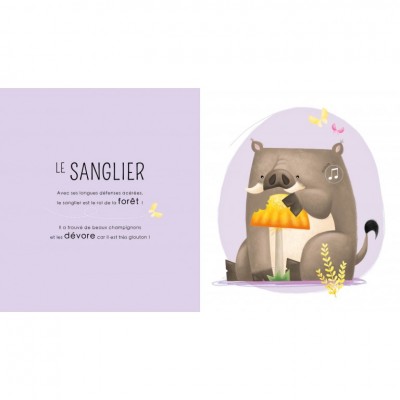 La forêt abrite de nombreux animaux : pour découvrir tous ses habitants, regarde ce joli livre et appuie sur les boutons pour connaître la petite histoire de chacun !