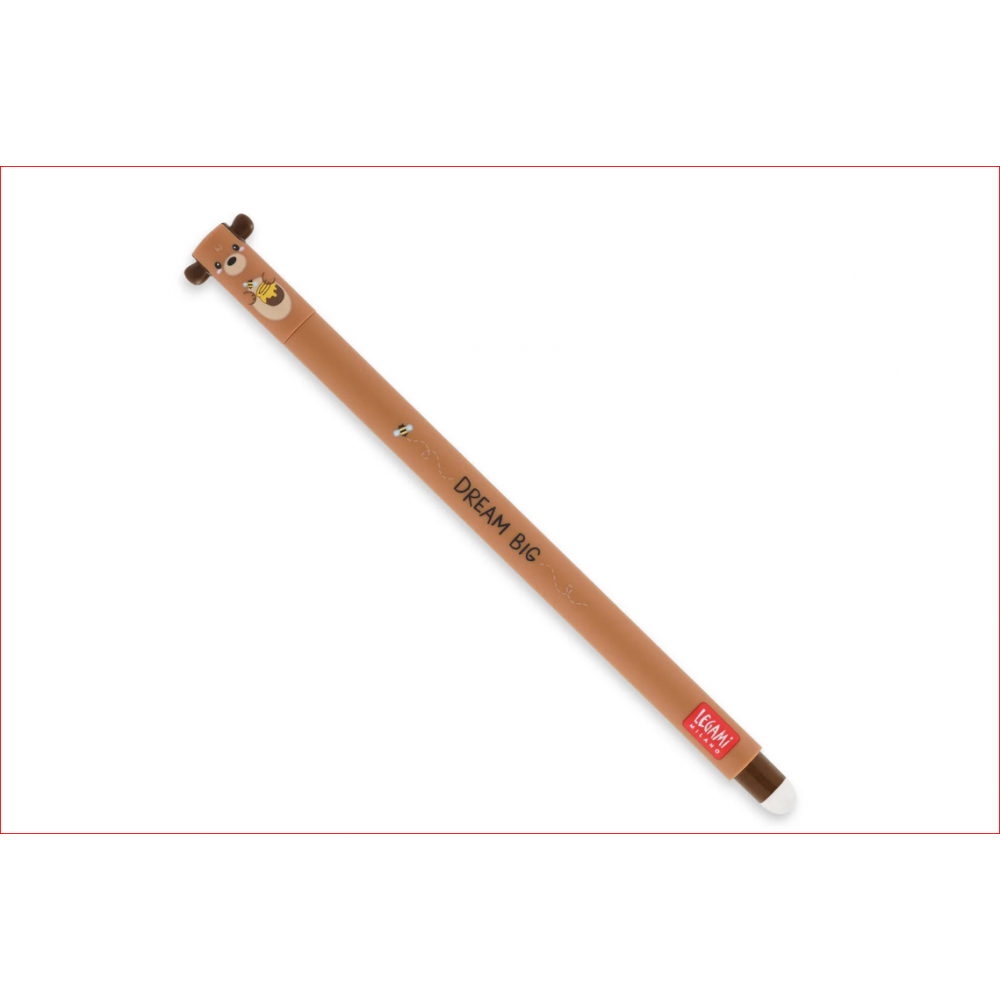 Rêvez en grand avec le Stylo Effaçable Ourson de Legami avec Encre Rouge Thermosensible. Et si quelque chose va de travers ? Aucun problème, il y a la Sphère sur l’extrémité qui efface le texte sans abîmer le papier. Diamètre pointe : 0,7 mm.