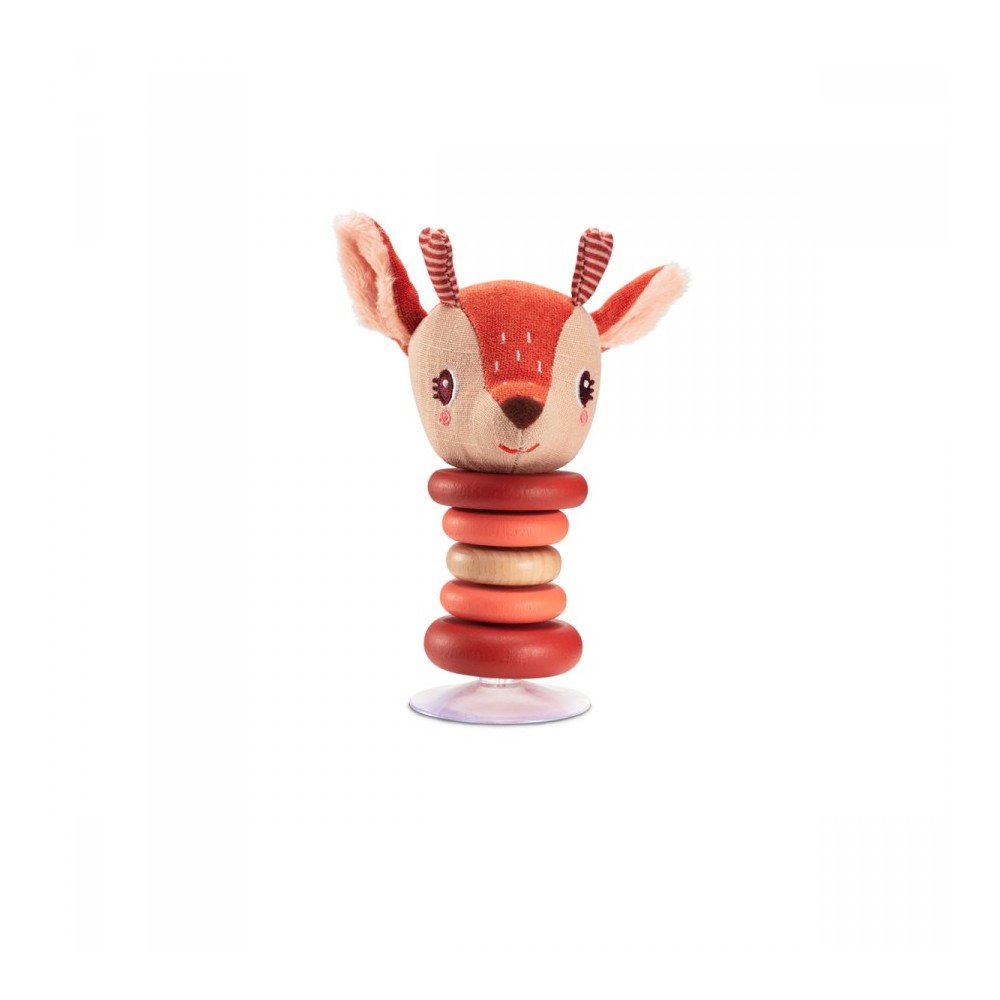 Stella le Faon adore danser et faire la fête. Toujours dynamique, elle ne peut pas rester en place ! Ce hochet à son effigie la représente bien ; il se balance joyeusement dans tous les sens à la moindre poussée. Grâce à la ventouse, il reste parfaitement debout et vous pouvez le fixer n'importe où.