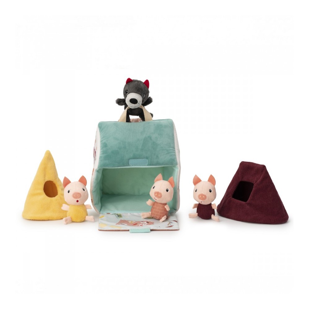 Ce jouet tout en tissu inspiré du conte du loup et des 3 petits cochons comprend 4 personnages et 2 petites maisons représentant la maison en paille et en bois. La troisième maison, qui représente la maison en briques, possède une cheminée où l'on peut glisser le loup, ainsi qu'une pente qui s'ouvre. Stimulant l'imagination, ce jouet encourage le jeu créatif et développe lla motricité fine. Offrez à votre enfant un divertissement captivant dans l'univers de ce célèbre conte !