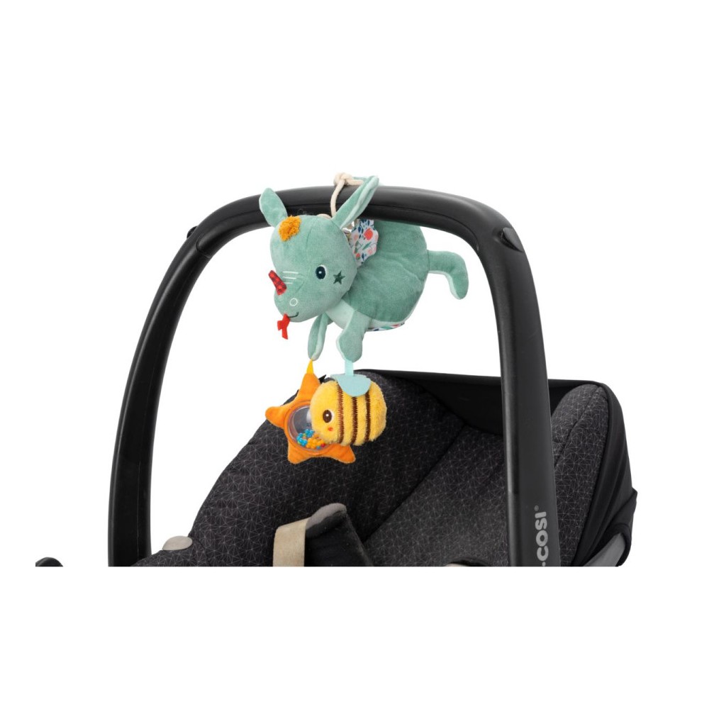 Joe le dragon, accroché au siège bébé, vole joyeusement au-dessus de bébé. Il joue avec les sons, le touché et les reflets… de quoi intriguer votre bout de chou !