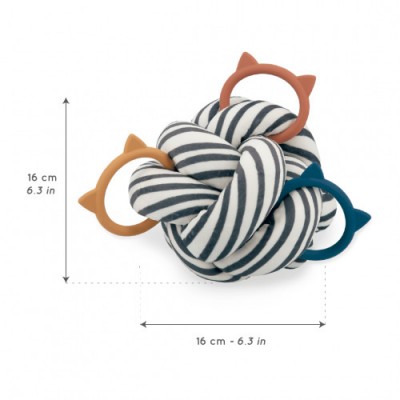 Avec 3 anneaux en silicone à saisir ou mordiller