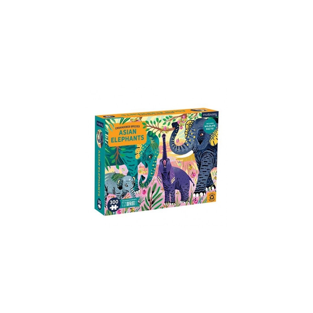 Découvrez le puzzle éléphants d'Asie de Mudpuppy, un puzzle en carton de 300 pièces sur le thème animalier pour les enfants à partir de 7 ans.